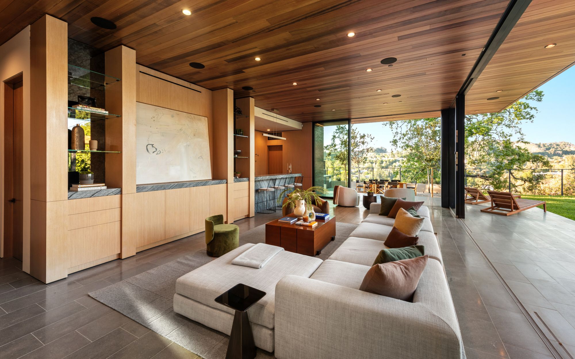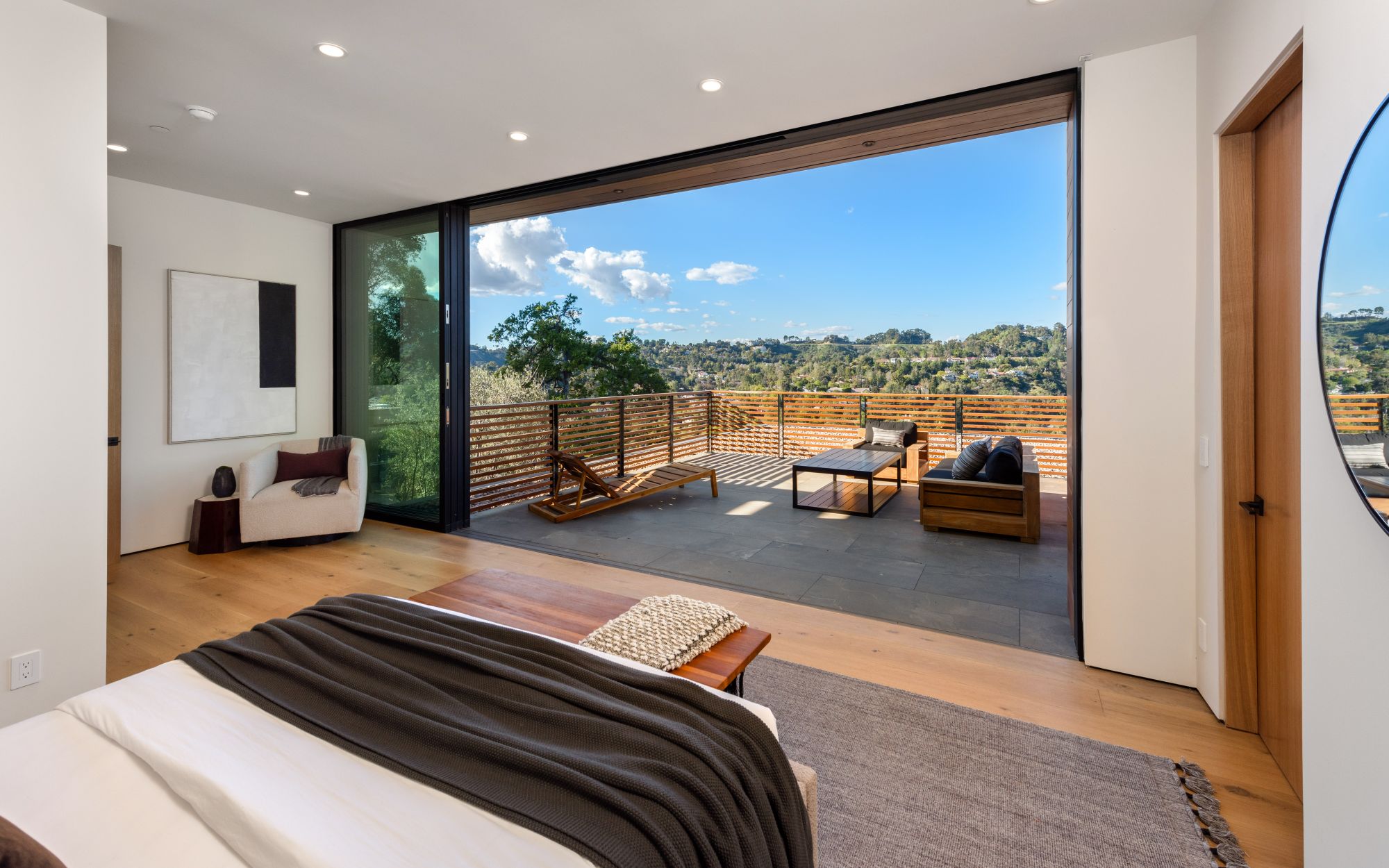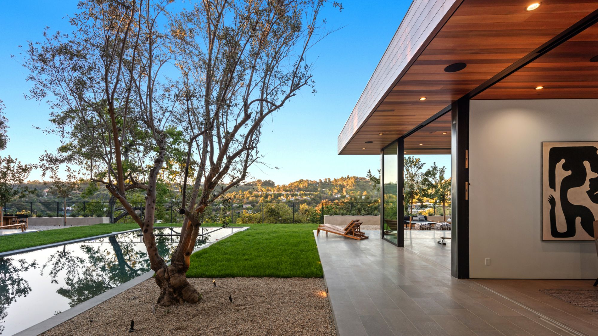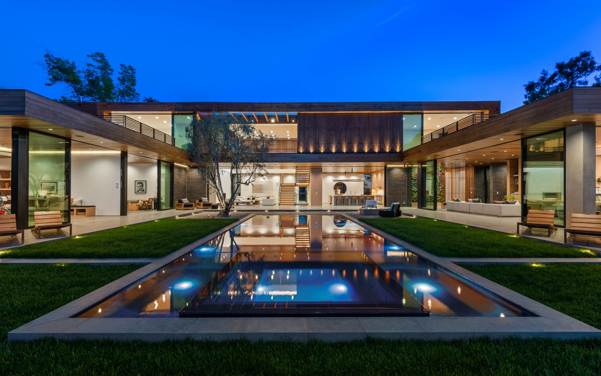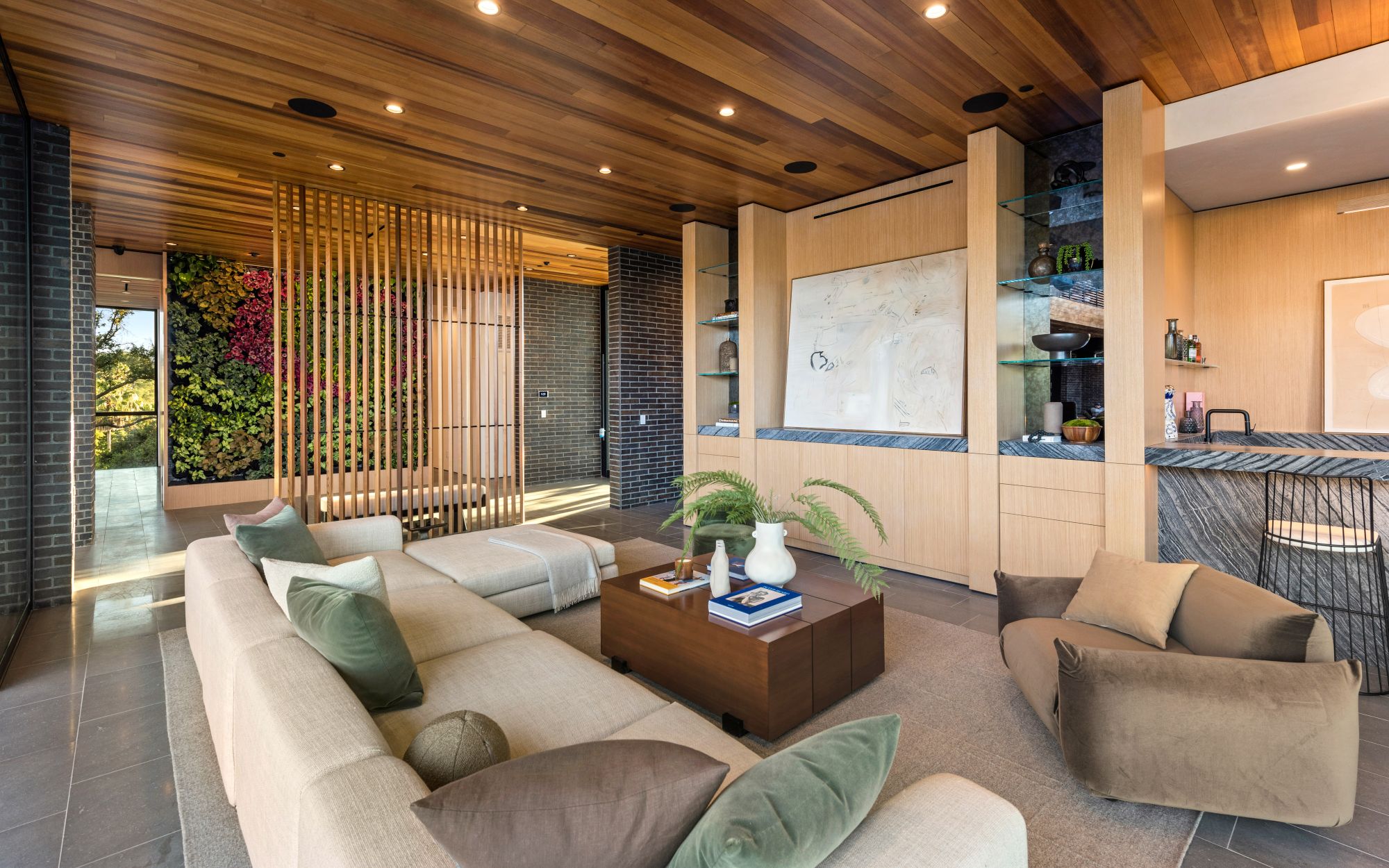 Just completed architectural masterpiece by Noah Walker that exemplifies world-class design and craftsmanship. Set behind the exclusive gates of Oak Pass Road in Beverly Hills, this ultra-private estate is designed for elevated living and grand entertaining. With 6 bedrooms and 9 bathrooms, the home offers ample space for family and guests. An oversized glass door leads to a dramatic foyer featuring a 10-foot greenery wall, brick-clad columns, and hardwood ceilings. A stunning two-story living room with fireplace and 50-foot automatic Fleetwood doors that pocket for seamless indoor/outdoor living. The kitchen boasts dual marble islands, oak cabinetry, Wolf and Subzero appliances, and two Miele coffee makers. The spacious primary suite offers a private sitting area with fireplace, spa-like bathroom, and private balcony overlooking the canyon. Outside, the meticulously landscaped yard offers canyon views, a zero-edge pool and spa, outdoor kitchen, fire pit, olive trees, and multiple lounge areas. The latest and greatest amenities include a movie theater, gym, Himalayan salt sauna, steam showers, wine display, and a Crestron smart home system. This exceptional estate seamlessly blends luxury, privacy, and cutting-edge amenities, offering an unparalleled living experience in Beverly Hills Post Office.