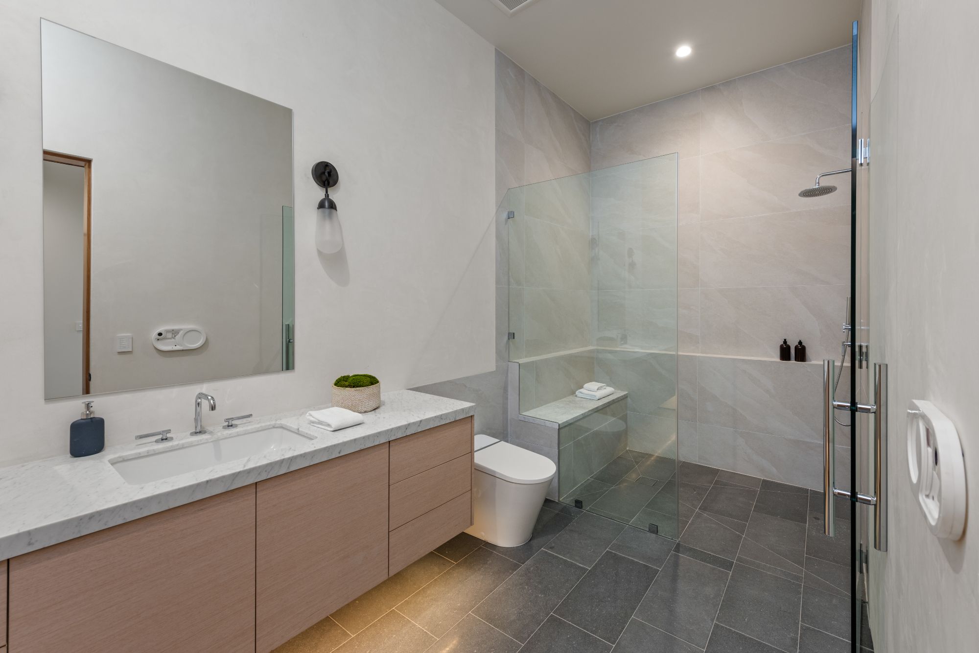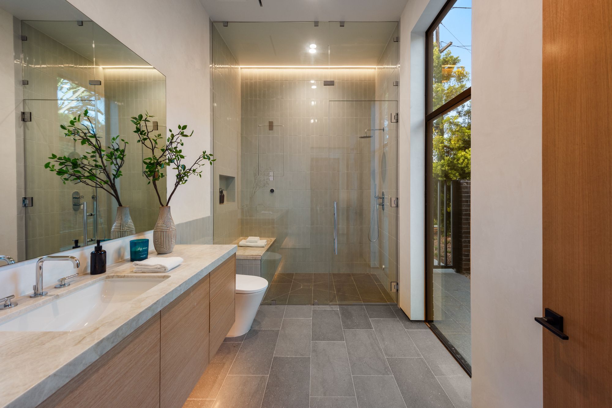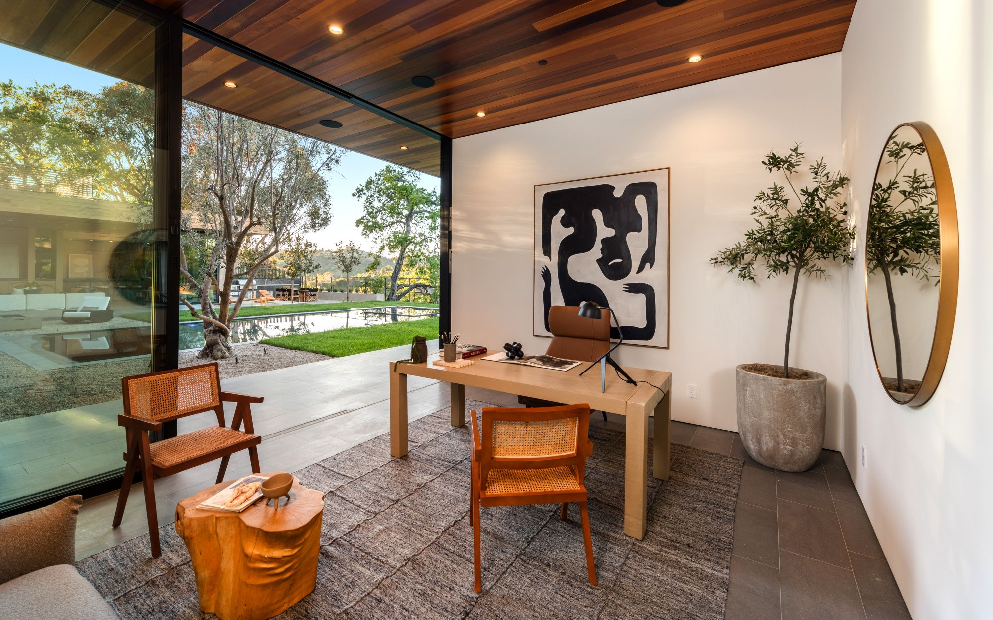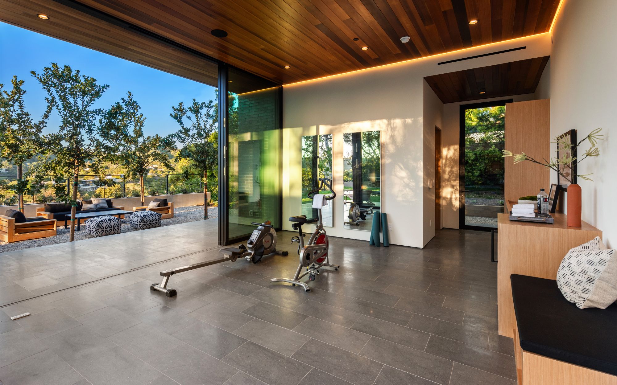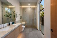 Just completed architectural masterpiece by Noah Walker that exemplifies world-class design and craftsmanship. Set behind the exclusive gates of Oak Pass Road in Beverly Hills, this ultra-private estate is designed for elevated living and grand entertaining. With 6 bedrooms and 9 bathrooms, the home offers ample space for family and guests. An oversized glass door leads to a dramatic foyer featuring a 10-foot greenery wall, brick-clad columns, and hardwood ceilings. A stunning two-story living room with fireplace and 50-foot automatic Fleetwood doors that pocket for seamless indoor/outdoor living. The kitchen boasts dual marble islands, oak cabinetry, Wolf and Subzero appliances, and two Miele coffee makers. The spacious primary suite offers a private sitting area with fireplace, spa-like bathroom, and private balcony overlooking the canyon. Outside, the meticulously landscaped yard offers canyon views, a zero-edge pool and spa, outdoor kitchen, fire pit, olive trees, and multiple lounge areas. The latest and greatest amenities include a movie theater, gym, Himalayan salt sauna, steam showers, wine display, and a Crestron smart home system. This exceptional estate seamlessly blends luxury, privacy, and cutting-edge amenities, offering an unparalleled living experience in Beverly Hills Post Office.
